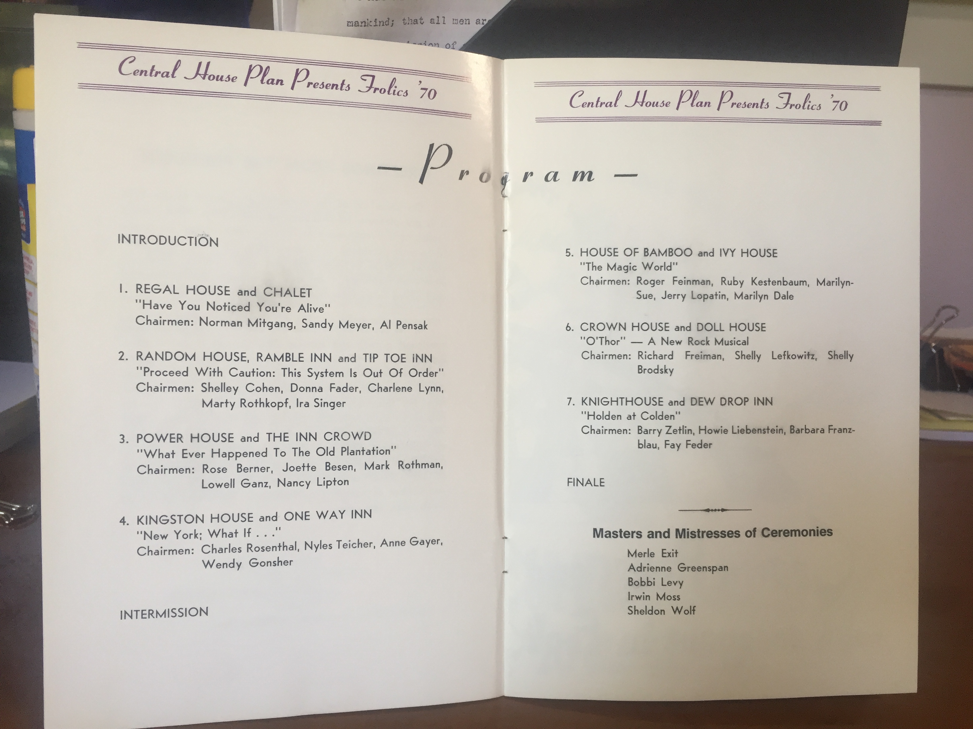 List of ALL winning skits for Follies and Frolics